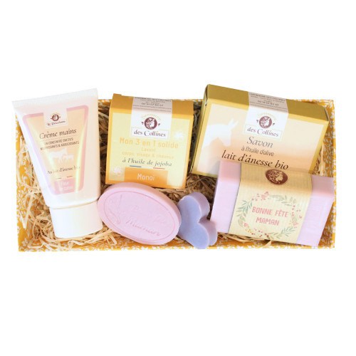 Découvrez nos coffrets cadeaux mêlant savons, cosmétiques et soins au lait d’ânesse ou végétaux, pour un moment de bien-être plein de délicatesse.